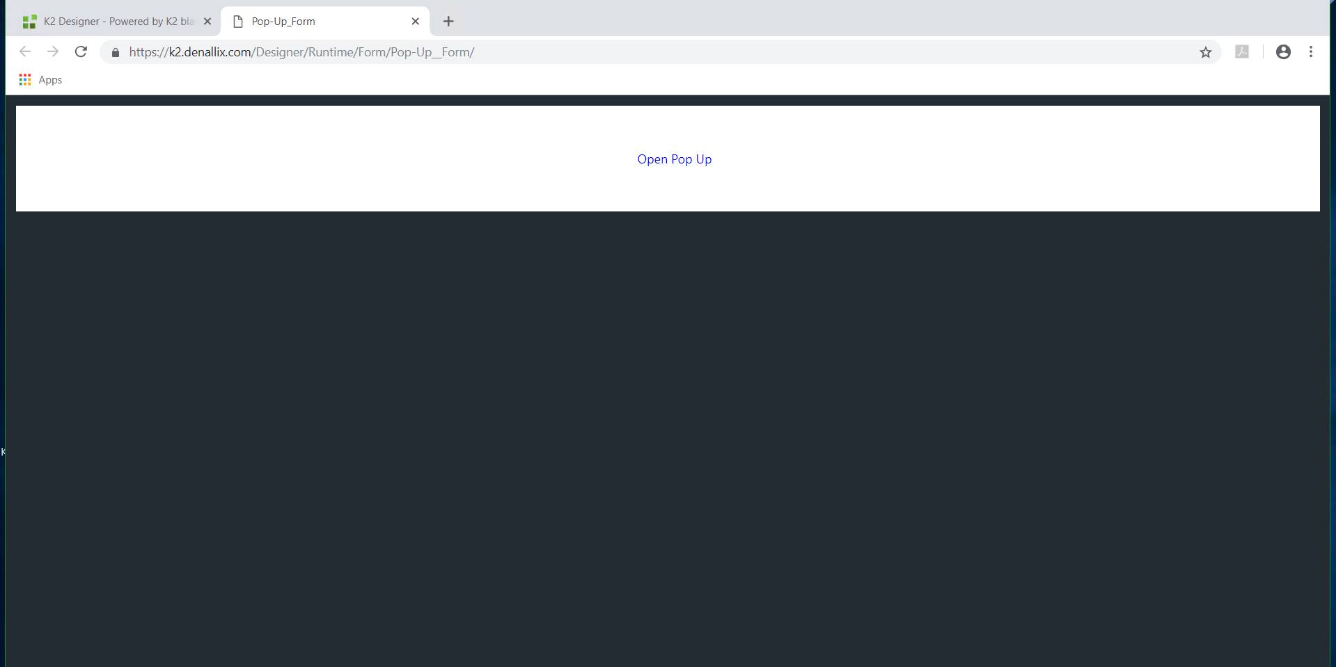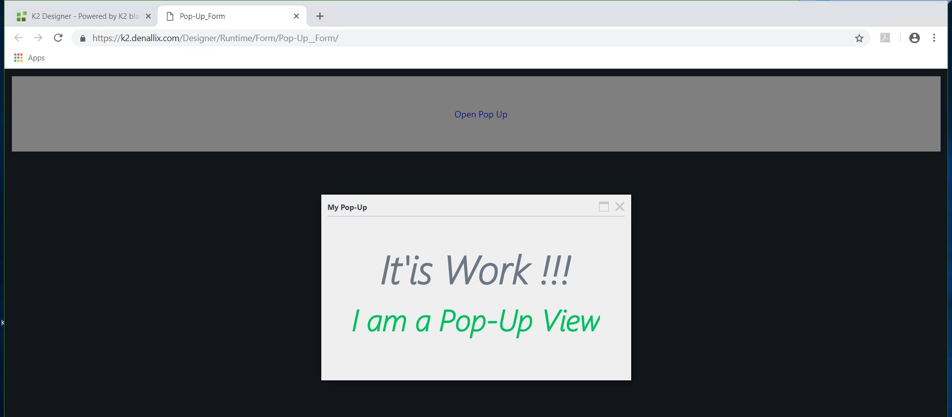 Les contrôles K2 qui n’ont pas l’événement « clicked » (comme Data Label, Label, HyperLink, etc.) ne donnent pas la possibilité de faire des opérations pendant le clic. Cependant, dans certains cas, nous voudrions par exemple, utiliser un « Data Label », un « Label » ou un « HyperLink » pour ouvrir une fenêtre pop-up. Comment sur K2 ouvrir une Pop-Up au clic sur un « Data Label » 😬😬😬😬 ? Pas de panique !!!!! ☝😌