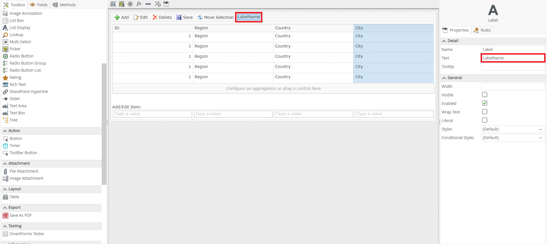 Créer un Label caché dans l’entête de la vue