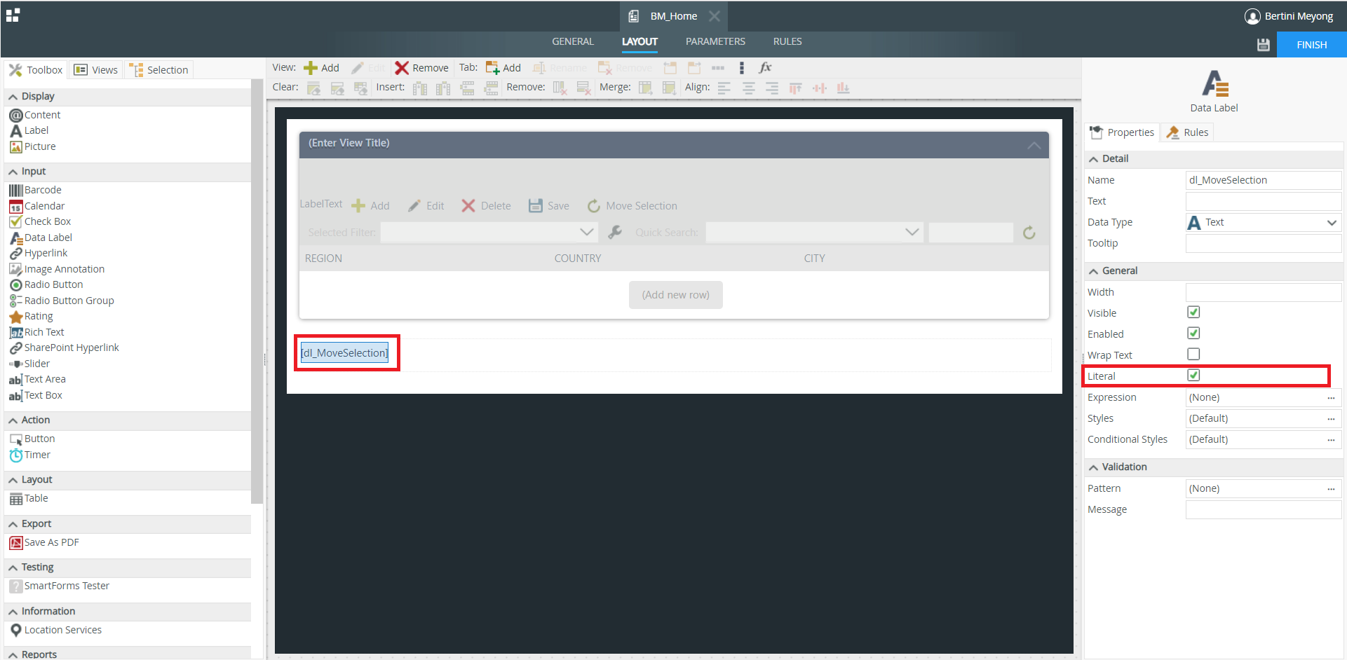 NB : Quelque chose de très important à noter, le Data Label caché doit être en mode Literal (comme dans la capture). Sans quoi, ça ne fonctionnera pas.