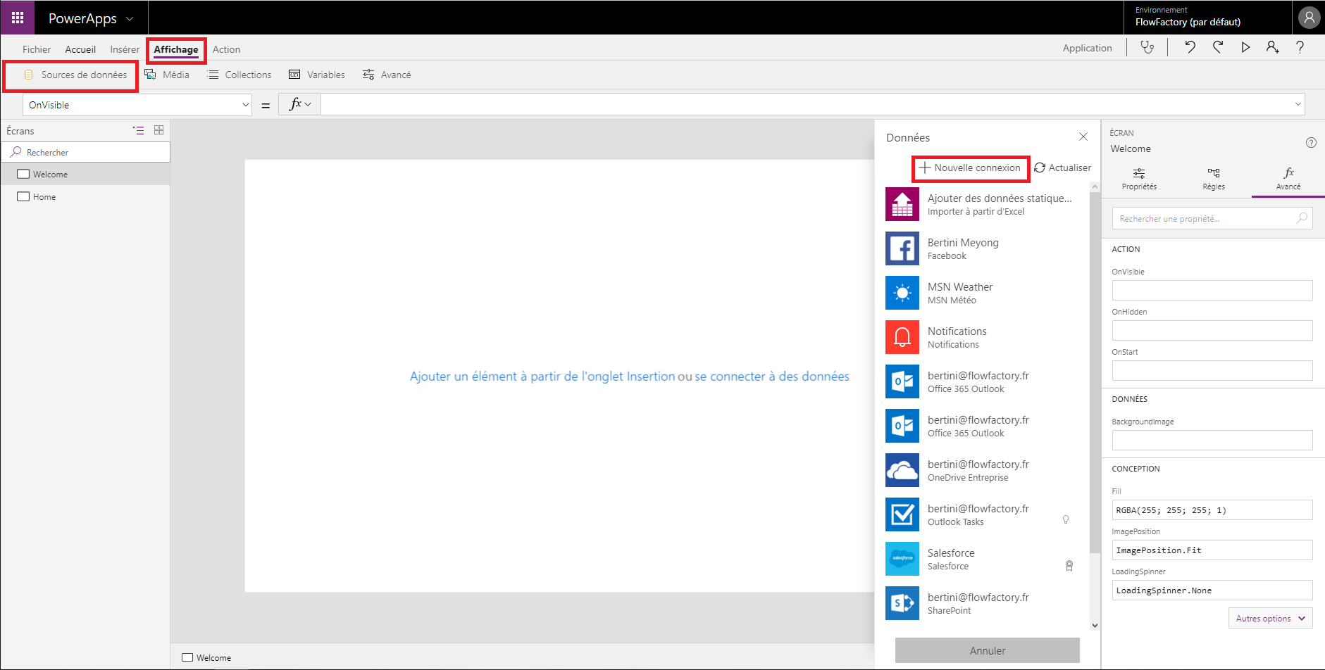 Voilà !!! Le but de l’article n’étant pas une présentation approfondie de PowerApps, passons au vif du sujet.