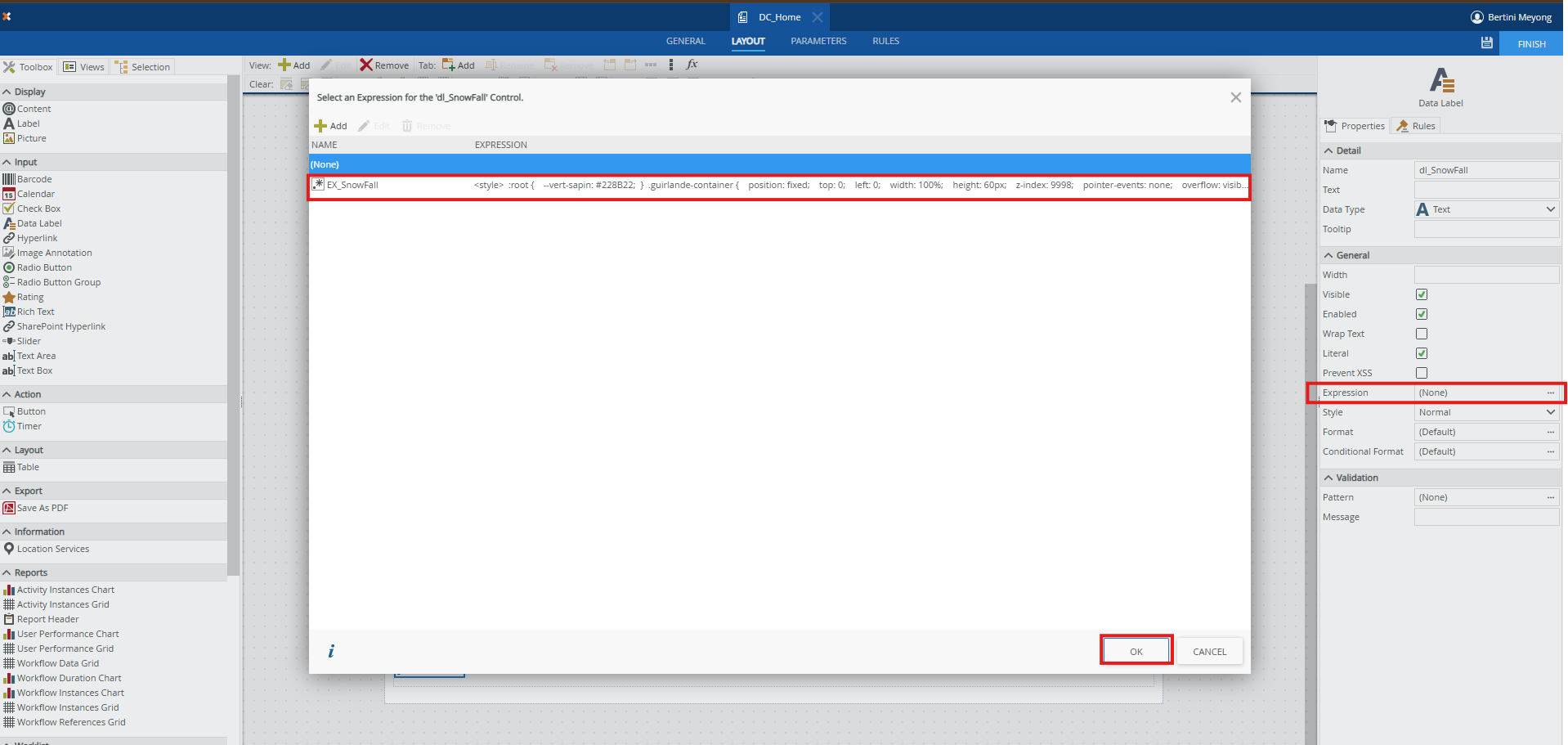Association d'une expression au Data Label dans un thème Noël pour formulaires K2