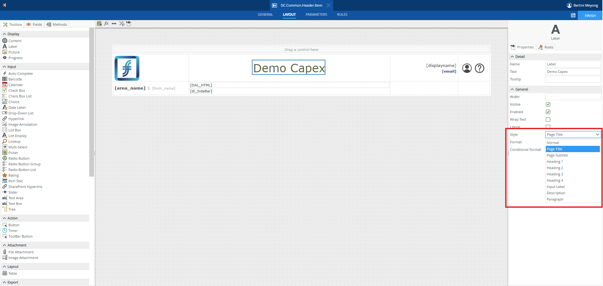 Dans votre Formulaire, ajoutez un contrôle Data Label n’importe où sur le formulaire.
