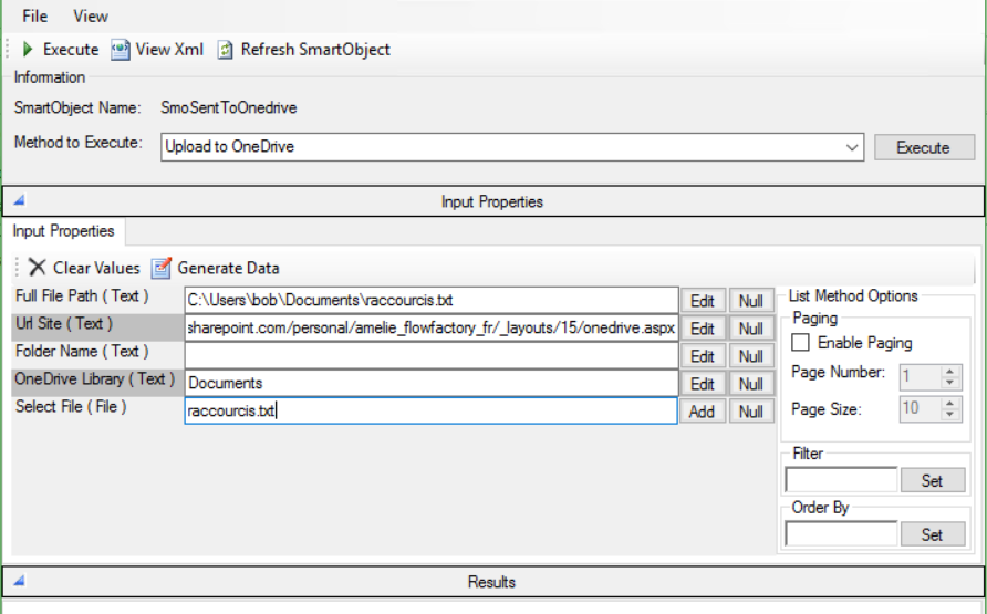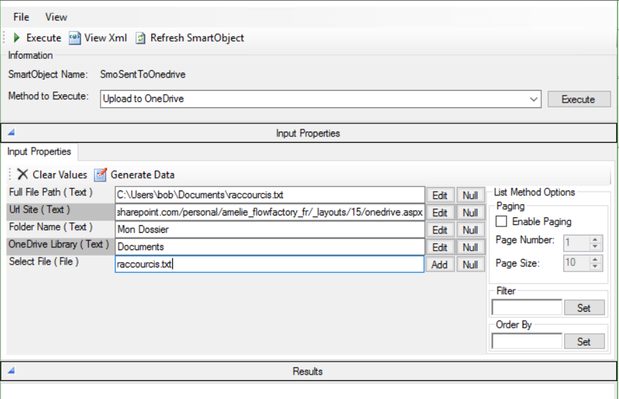 - OneDrive Library : renseigner la librairie dans laquelle vous voulez créer votre dossier ensuite, cliquer sur Execute