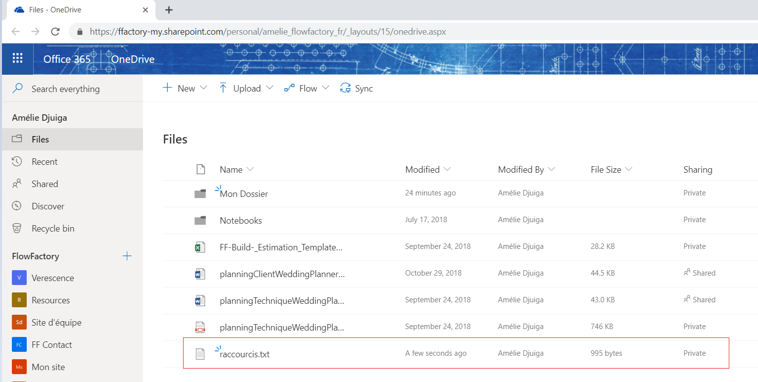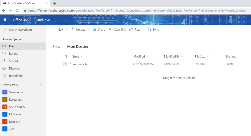 2. Envoie d’un fichier sur OneDrive
