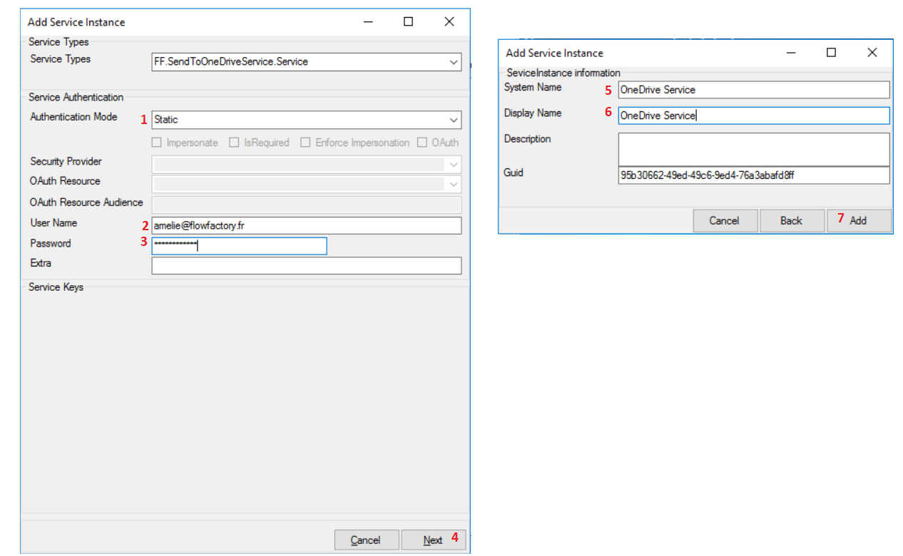 - Service: sélectionner le service SendToOneDrive